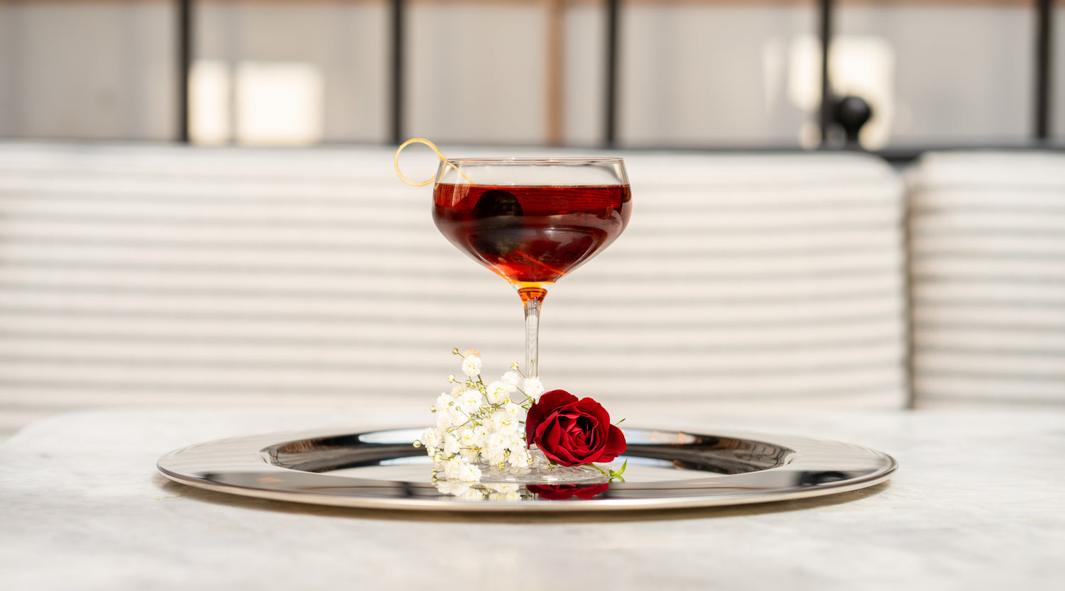 Stir over ice and serve with a cherry up in a coupe or a rocks glass, with a big cubeSome Like It Hotter